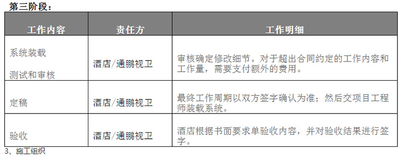 注:如果酒店现场不具备互动电视系统项目的施工条件,项目工期应按相应拖延的时间合理顺延,相应责任与成本由酒店方承担。