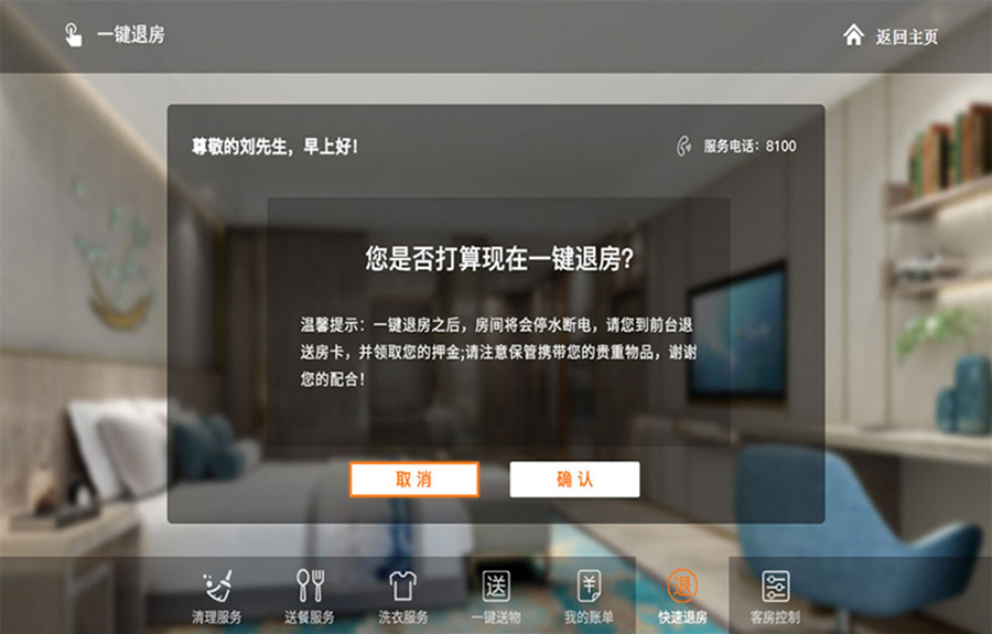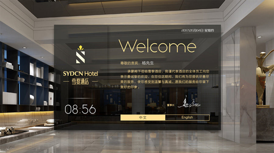 温馨体贴的酒店关怀、客人名字实时呈现