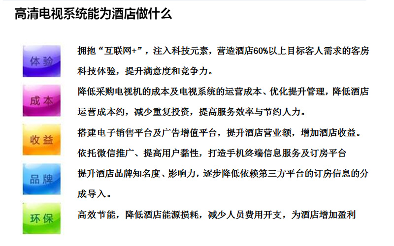 综上所述,本方案和传统的酒店模拟电视比较有以下优势: