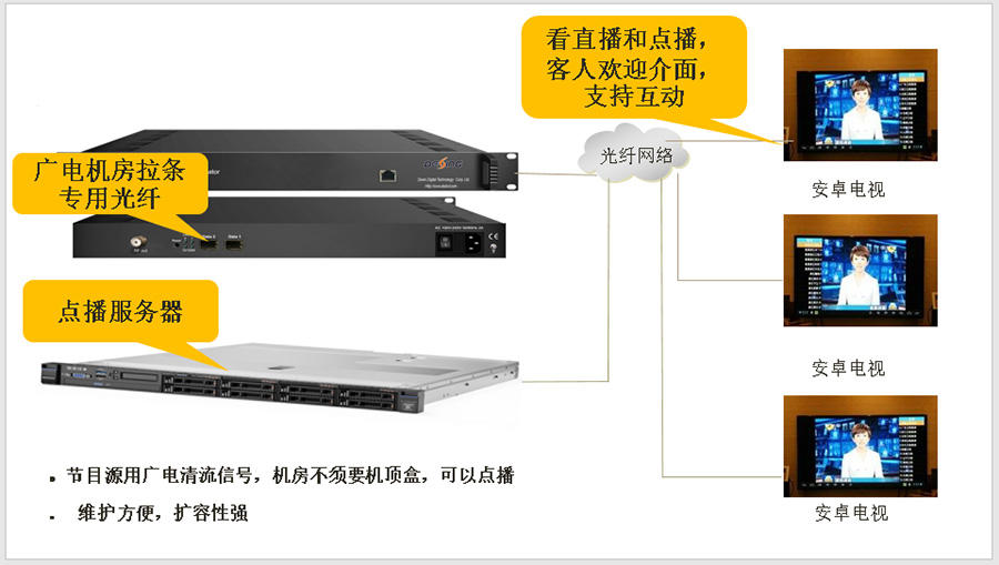 全光网融合通迅、音视频调度、智慧云屏、 三网合一IPTV电视系统服务器、智慧酒店电视系统多网融合系列一体化解决方案。