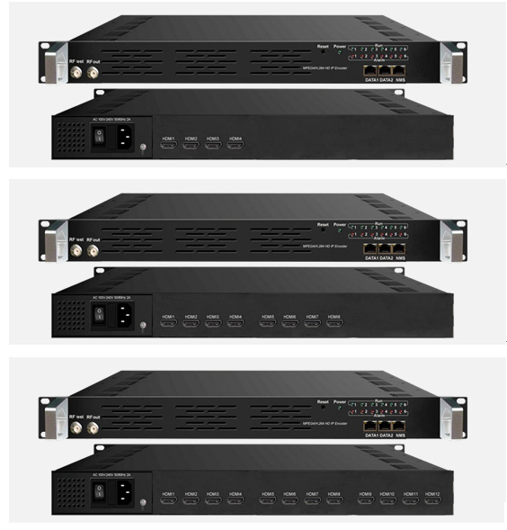 高清系列高清编码调制一体机是我公司*研发的集高清编码和调制于一体的高性价比设备。该设备支持8路/12路HDMI输入、1路千兆IP输入/出、1路百兆IP输入;支持4个DTMB单载波(或DVB-C/-T)输出或4路MPTS输出。该设备支持OSD功能,可在每路编码视频中插入图片、二维码、文字等信息(选配),具有高集成度、高性能、低成本的特点,单台设备集成了一套前端系统功能,非常适用于酒店、会所、医院、浴场等数字电视系统。