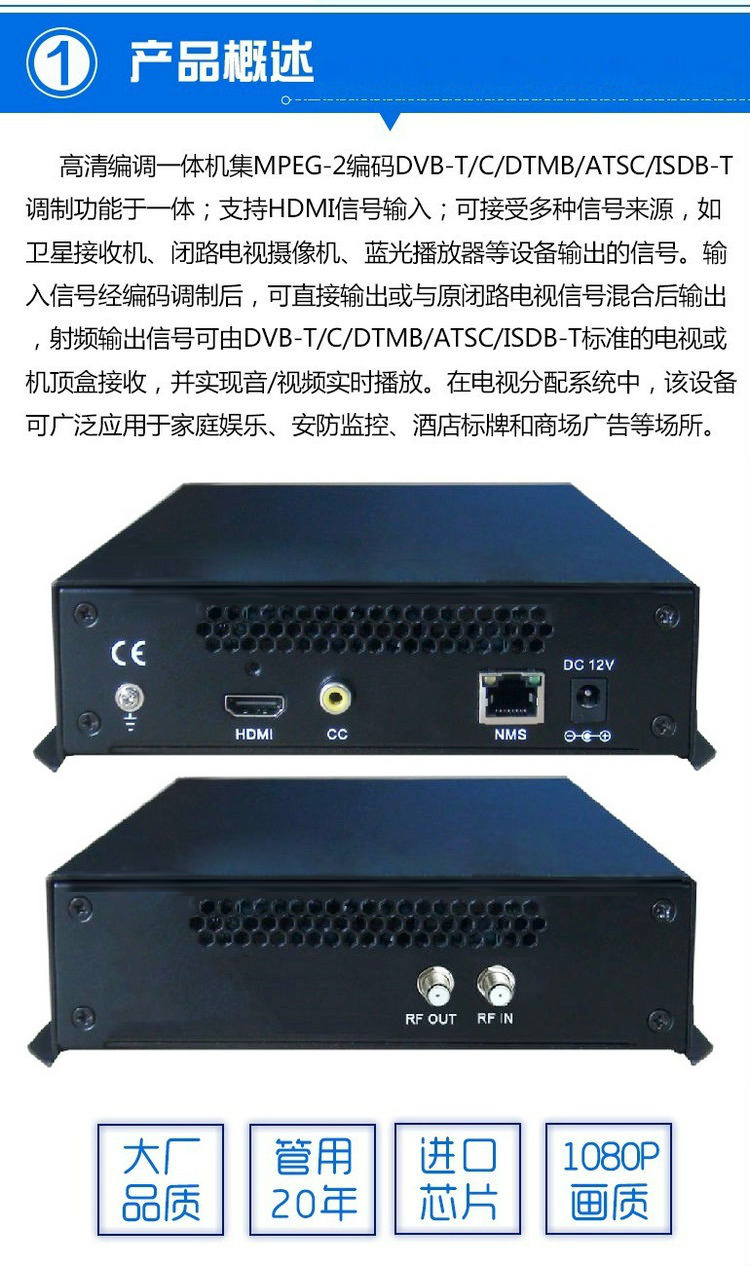 便携式单路高清编码调制器一体机 HDMI转RF DVB-C/-T/DTMB/ATSC