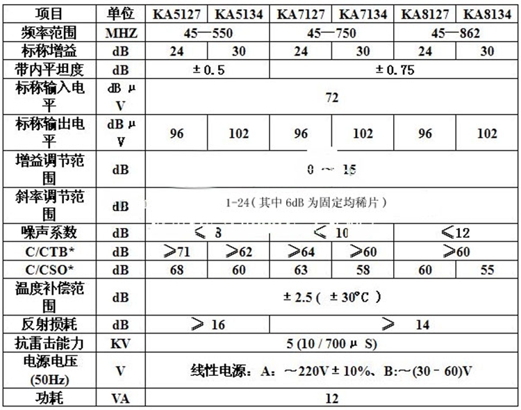 适用于干线多级传输或要求较高的分配网络中数字电视系统、模拟电视系统中增强信号使用,采用*高指标进口模块,使用前后两级双均衡器,线路平坦度简单方便,一进二次每路有可以过流保护,两路输出分支或分配任意插变,高可靠性电源和严密多重防雷击系统,确保其长期连续工作的可靠性。