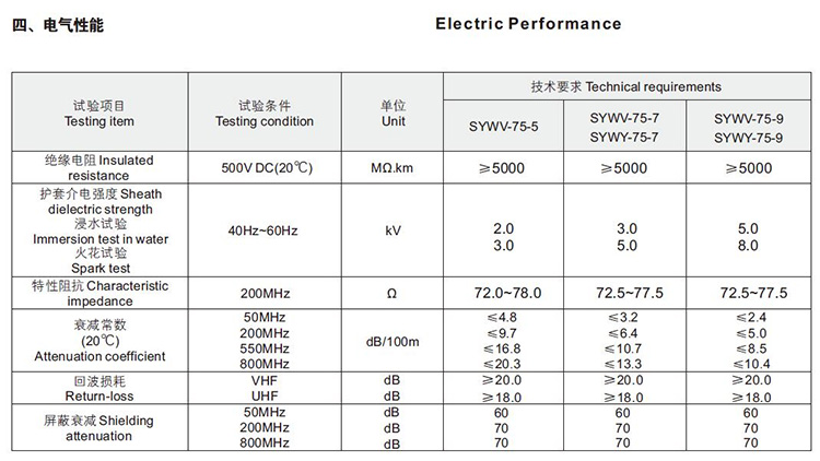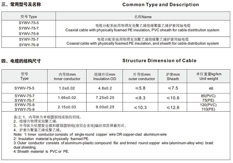 同轴线缆(无氧铜75-5/75-7/75-9)