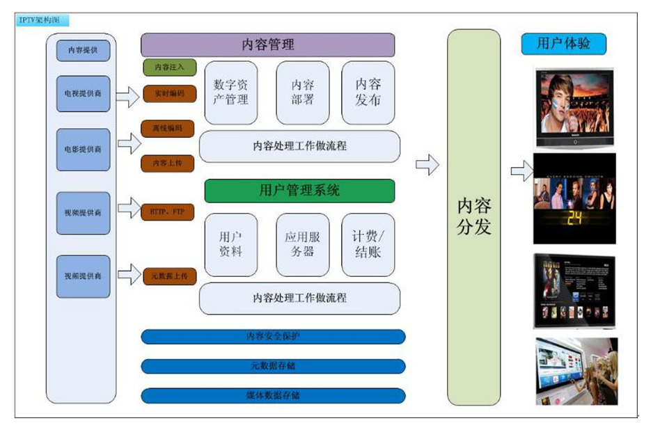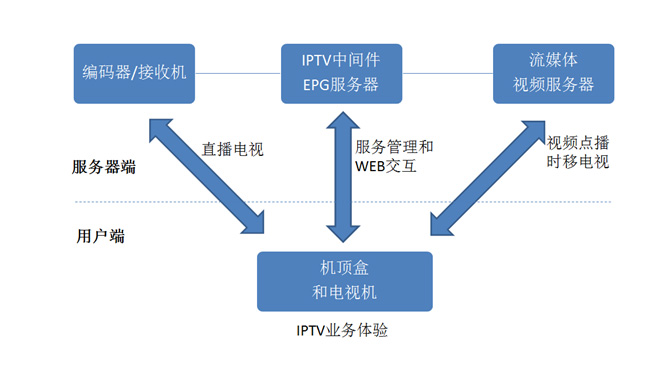 IPTV 是基于行业标准的、在 IP 局域网络上传送视频及其他信息内容的平台,提供了包括编码器,数字接收机,IPTV流媒体服务器,IPTV中间件,内容分发网络,终端机顶盒的端到端 IPTV 解决方案。
