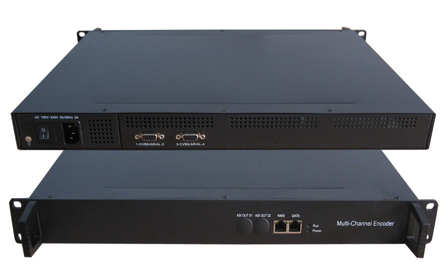 4路标清编码器是我公司*研发的高集成度的标清编码设备。该设备支持4路CVBS输入(复合视频和非平衡立体声音频)、支持MPEG-2、MPEG-4 AVC/H.264编码后的节目复用成1路MPTS输出,支持ASI输出(选配)。支持1路千兆/百兆IP输出。该设备支持OSD功能,可在每路编码视频中插入图片、二维码、文字等信息(选配),具有高集成度、高性能、低成本的特点,单台设备集成了一套前端系统功能,非常适用于酒店、会所、医院、浴场等IPTV电视系统。