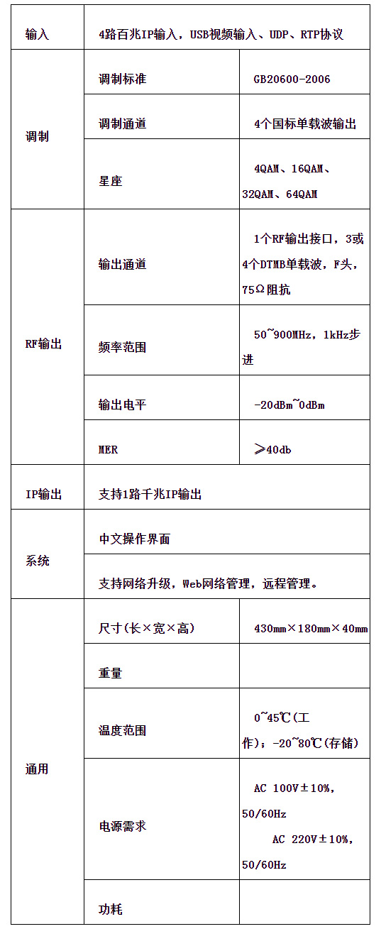*支持1个RF输出接口,3或4个DTMB单载波输出